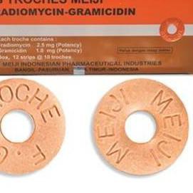 Fradiomycin dan gramicidin obat apa. Obat ini digunakan untuk membunuh bakteri penyebab sariawan radang tenggorokan amandel dan berbagai jenis infeksi bakteri pada gusi dan mulut. Selamat siang dok saya lagi hamil 6 bulan dok trus amandel saya lagi kambuh lalu saya minum obat meiji apakah tidak apa apa dok karna sakit. Nama lain fradiomycin yaitu neomycin suatu antibiotik golongan aminoglikosida yang bekerja mengganggu sintesis protein mikroba dengan berikatan pada subunit ribosom 30S.