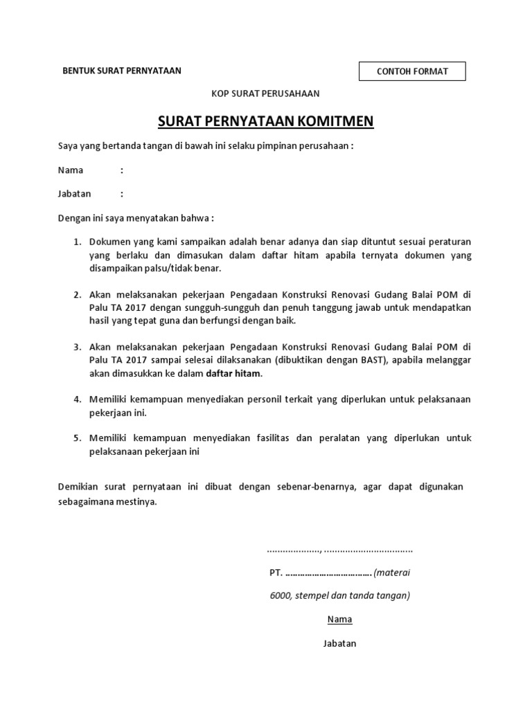 Persyaratan Membuat Surat Pernyataan Komitmen Doc